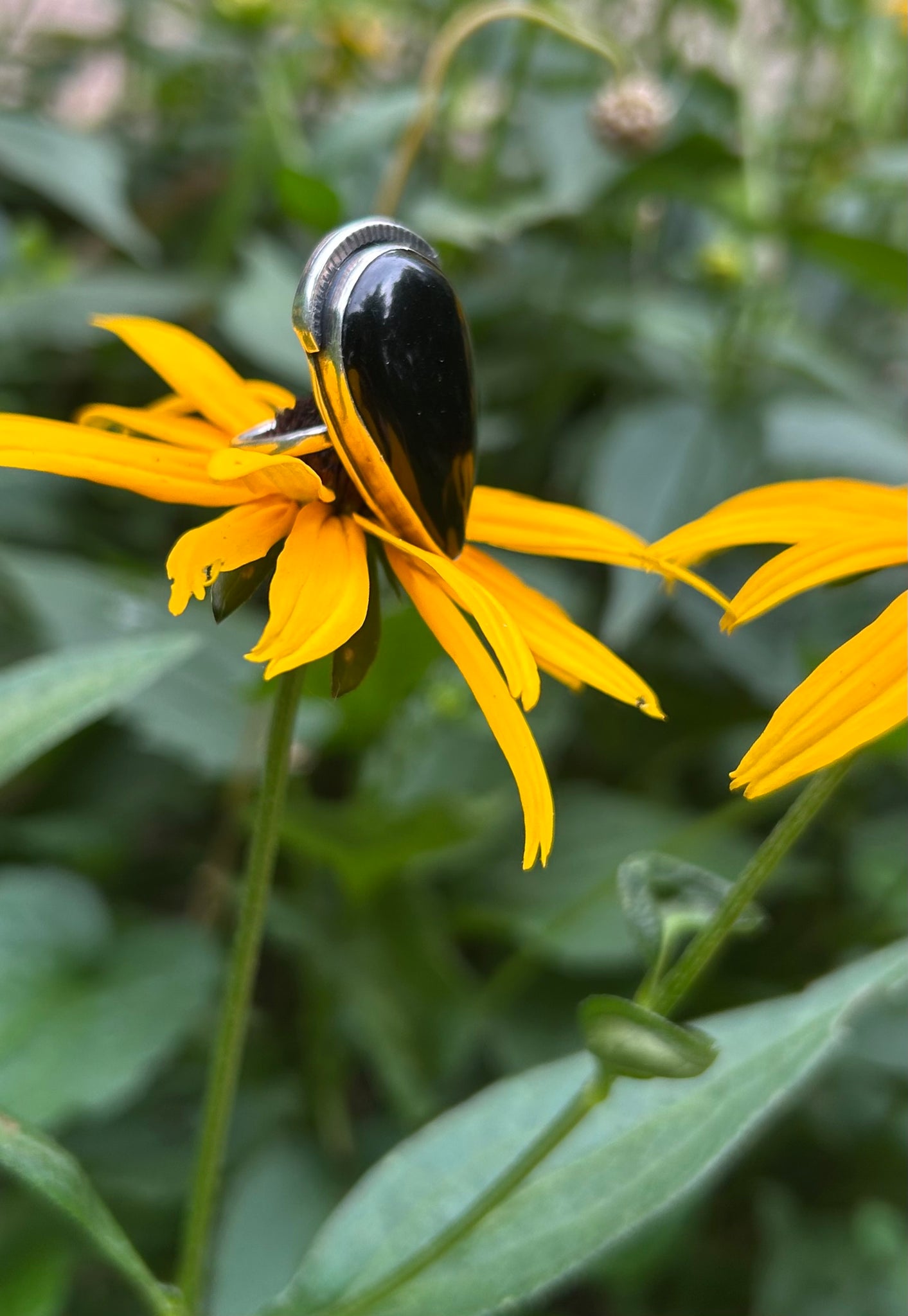 Black onyx pear shape gemstone set in sterling silver ring