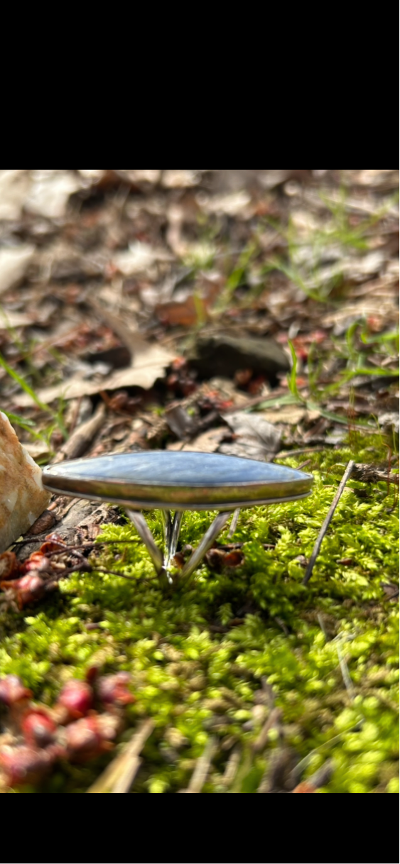 Maquis shape blue kyanite set set in one of a kind sterling silver ring