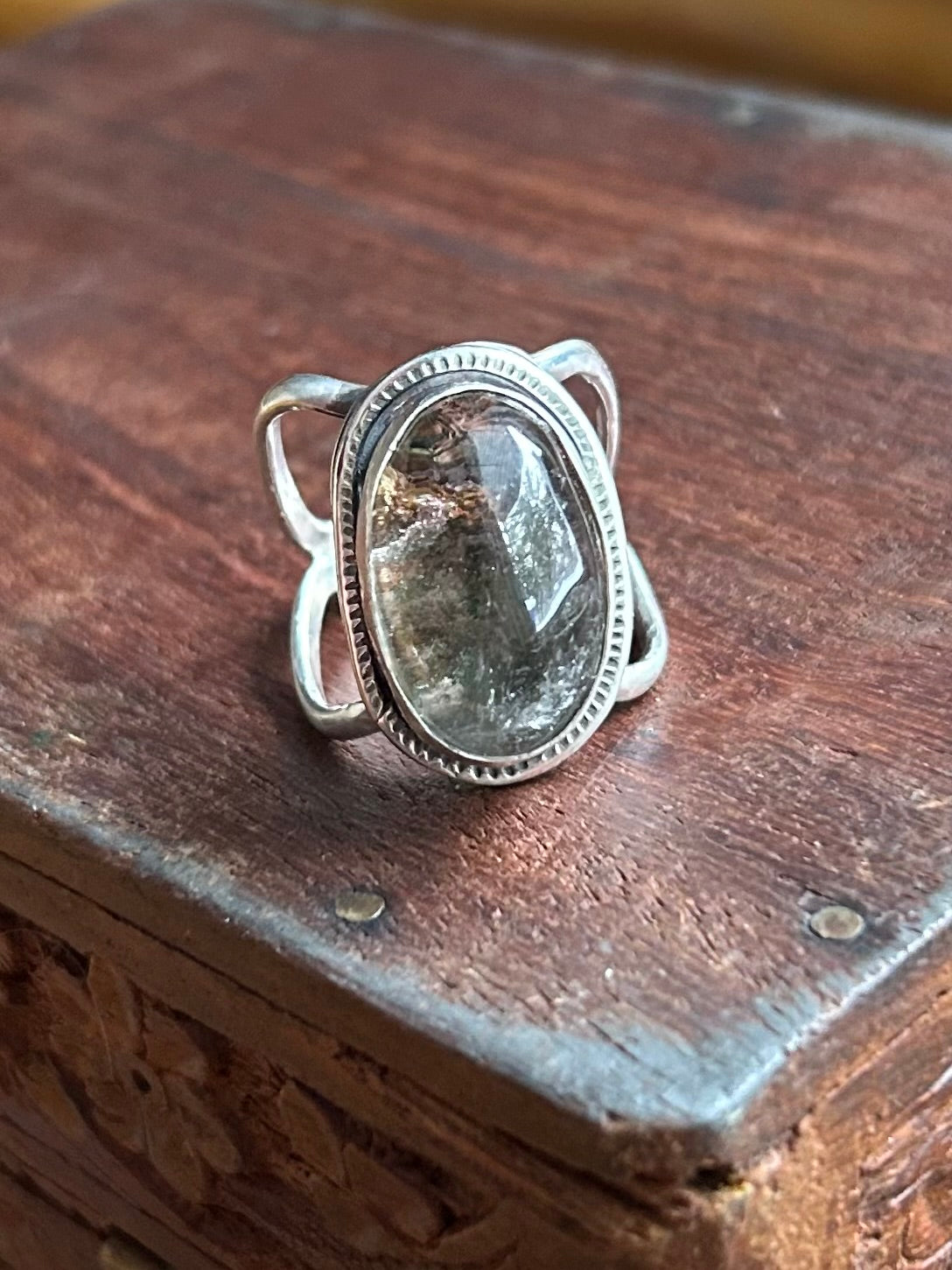 Natural shamanic dream quartz set in one of a kind sterling silver ring
