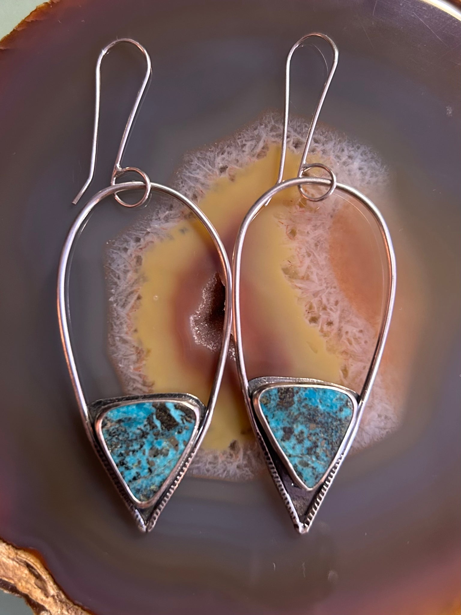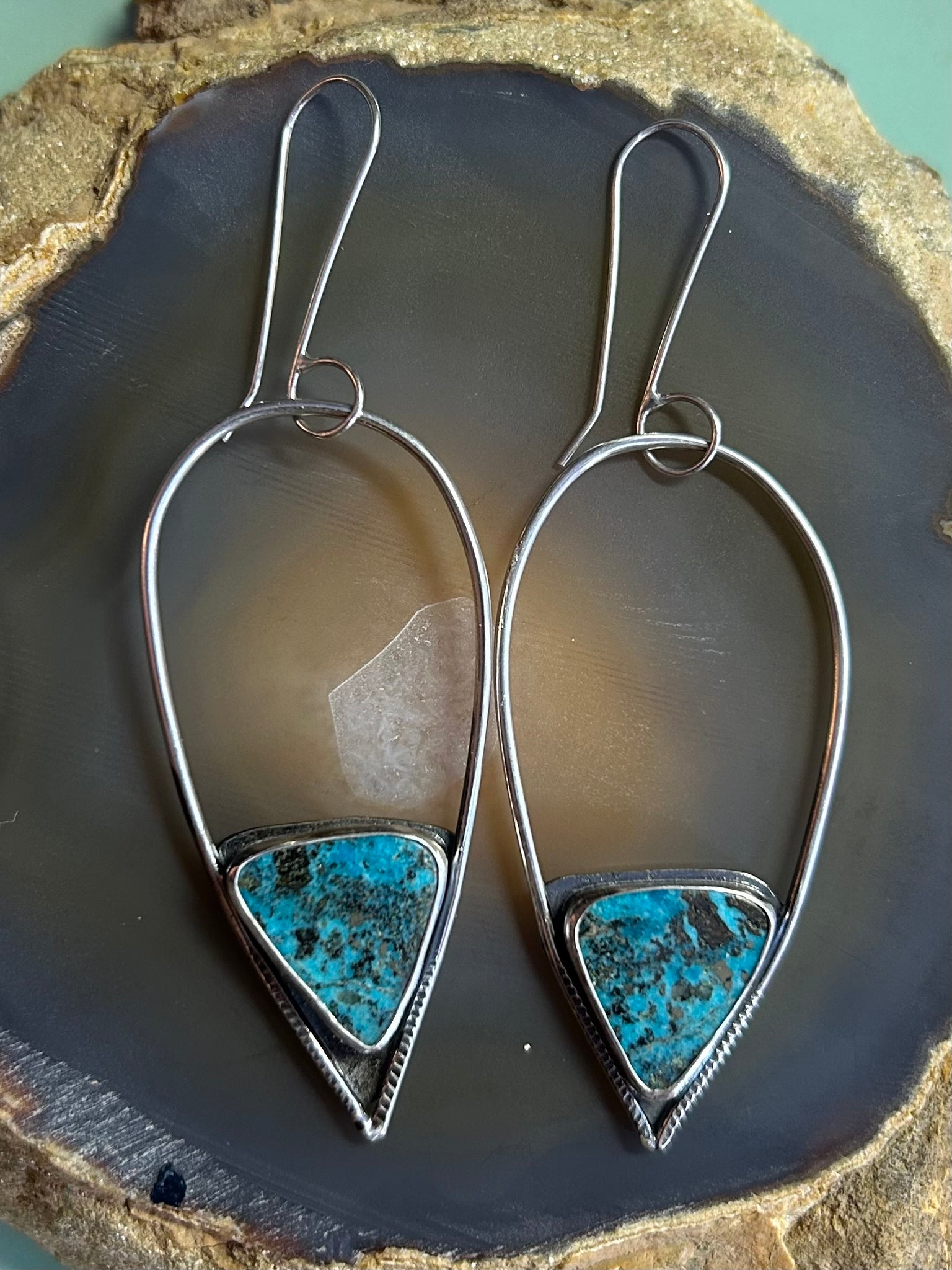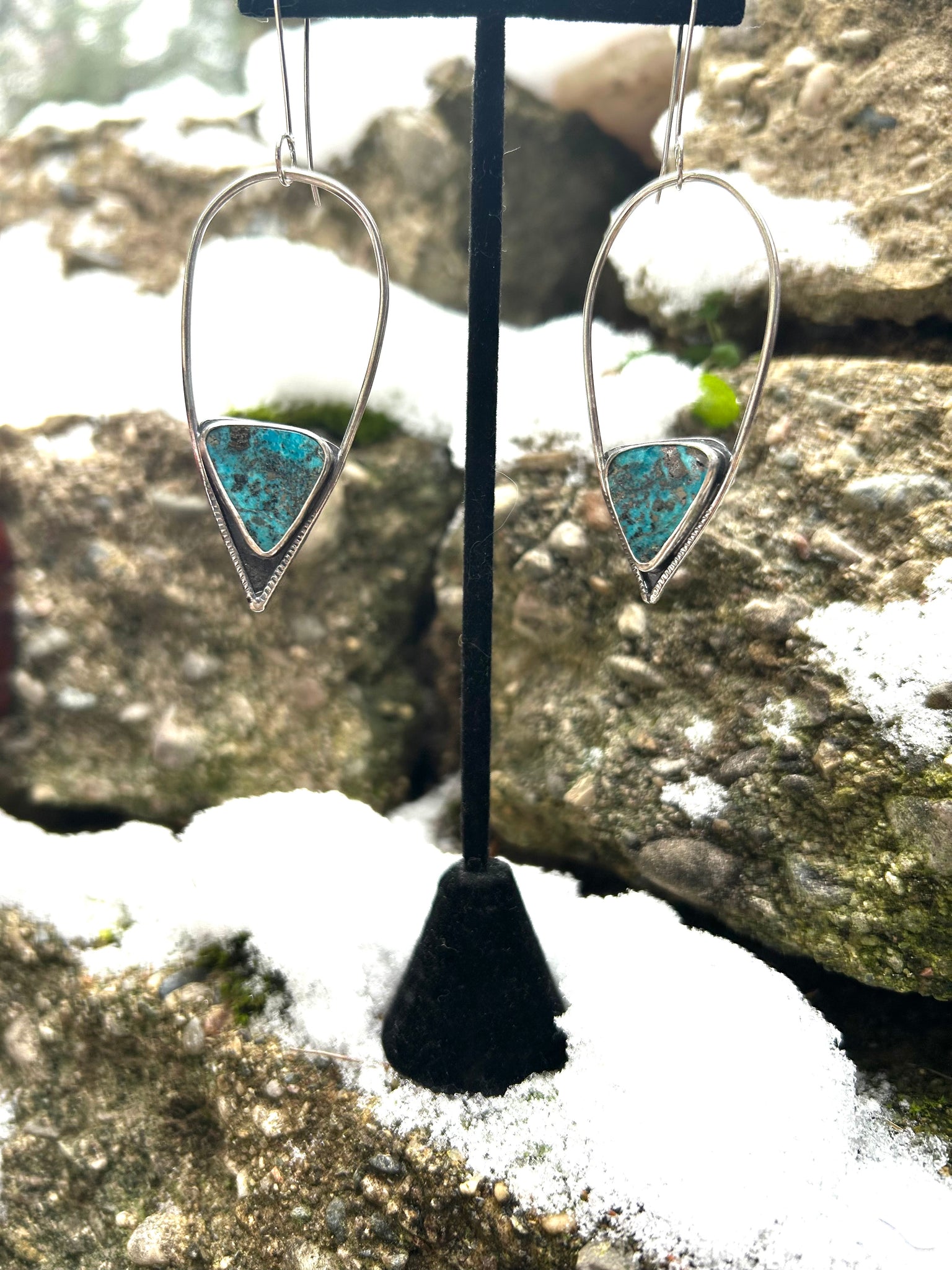 one of a kind natural Turquoise set in sterling silver earrings with sterling silver hooks